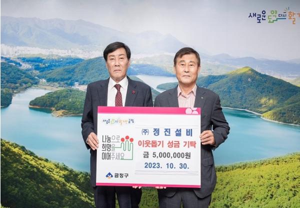 부산시 금정구는 10월 30일 ㈜정진설비에서 이웃돕기 성금 500만 원을 기탁했다고 밝혔다.