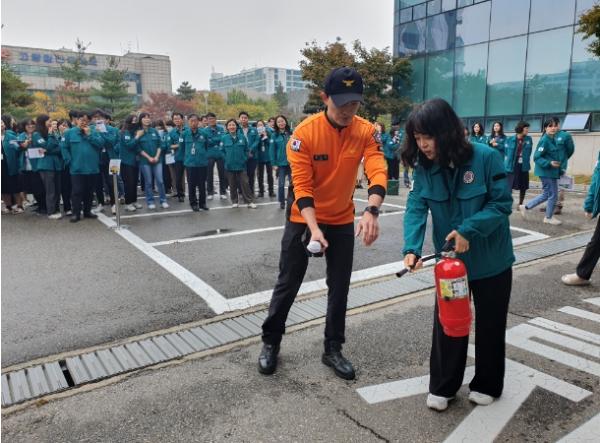 일산소방서와 연계하여 전 직원(170여명)을 대상으로 진행했으며, 화재대피 및 소화기 사용법을 체험했다.