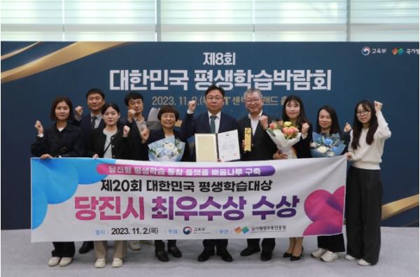 당진시는 지난 2일 당진형 평생학습 통합 플랫폼 ‘배움나루’의 성과를 인정받아‘제20회 대한민국 평생학습대상’에서 최우수상(교육부장관상)을 받았다.