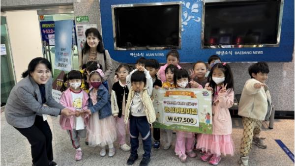 이은순 원장은 “아이들에게 나눔의 소중함을 알려줄 좋은 기회가 될 것 같아 기부를 결정했다”며 “앞으로도 사회에 선한 영향력을 미칠 수 있는 어린이집이 되도록 아이들과 함께 노력하겠다”고 말했다.