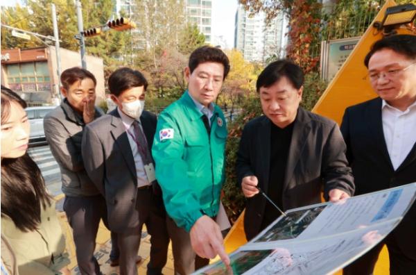 이 시장은 학교 앞 교차로의 횡단보도 앞 대기공간이 협소해 학생들이 몰리는 하교 시간에 안전사고 발생 우려가 제기된 상현초등학교 앞으로 이동해 현장을 살피고 "학생들의 통학 안전을 위해 공간을 확대하는 게 옳겠다"고 했다.