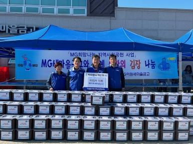 이원새마을금고 희망나눔봉사회는 지난 2일~3일 옥천읍?이원면지역사회보장협의체에 김장김치(옥천읍 100통/12L, 이원면 136통/12L)를 전달했다.
