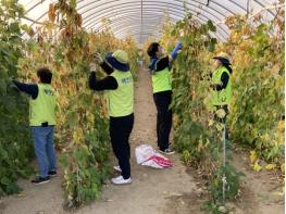 가족지원과 소속 직원 20여명은 농가주로부터 호랑이콩 수확 방법에 대한 설명을 듣고 작업을 도우며 구슬땀을 흘렸다.