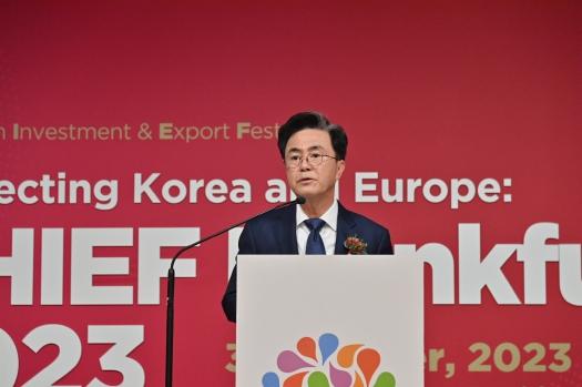 이 자리에서 김 지사는 59년 전인 1964년 독일 프랑크푸르트에서 대한민국 경제 발전을 꿈꿨던 박정희 전 대통령과 30년 전 프랑크푸르트에서 신 경영선언을 했던 이건희 전 회장에 이어, 역동적이며 기업하기 좋은 충남이 나서 공동 번영의 미래를 열어 나아가겠다 의미의 ‘프랑크푸르트 선언’을 내놨다.
