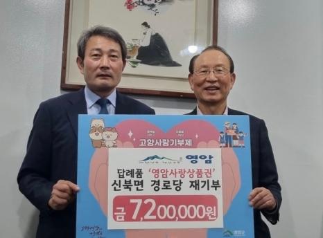 나아가 이들은 고향사랑기부 답례품으로 받은 720만 원 상당의 영암사랑상품권을 신북면 경로당에 재기부해 남다른 고향 사랑을 보여줬다.