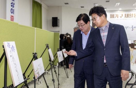 이날 성과보고회에는 자원봉사자들의 재능기부로 싱크대 자투리 나무를 활용해 만든 액자에 그림과 캘리그라피 등 작품 60여점이 전시됐다. 전시된 작품들은 지역 경로당 어르신들에게 전달할 예정이다.