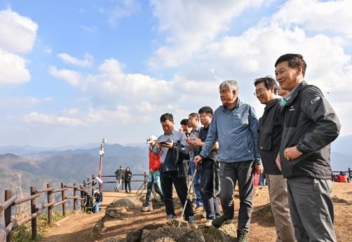 최 군수는 서건희 기획담당관, 전증표 총무행정담당관, 안석균 시설국장, 김영환 관광과장, 지형규 산림과장, 오세준 남면장 및 관계 공무원과 함께 최근 사회관계망서비스(SNS)를 통해 입소문을 타고 핫플레이스로 급부상한 민둥산 돌리네를 비롯해 발구덕에서 민둥산 정상까지 직접 오르며등산로를 점검했다.