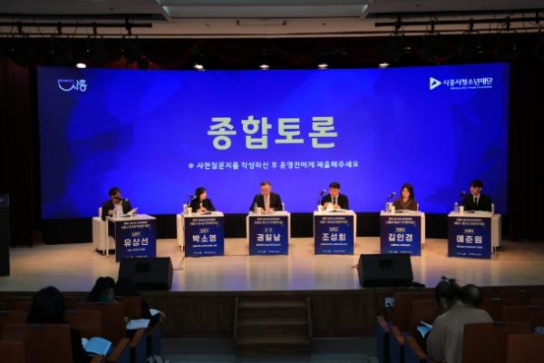 종합토론에서는 명지대학교 청소년지도학과 권일남 교수가 좌장을 맡고, 조성희(서울신학대학교 사회복지학과 교수), 박소영(시흥시의회 교육복지위원회 위원), 유상선(시흥시 청년청소년과장), 김인경(서해중학교 교육과정부장), 예준원(시흥시청소년참여위원회 위원장) 토론자가 참여했다. 이들은 주제 토론과 함께 자유로운 질의응답을 펼치면서 열띤 토론의 장을 형성했다.