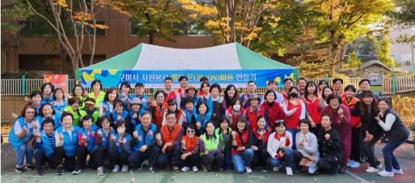 구미시는 3일 고아읍 초롱공원에서 구미시종합자원봉사센터 주관으로 자원봉사자와 시민 200여 명이 참여해 '구미시 행복 온(溫/ON)마을 만들기'를 진행했다.
