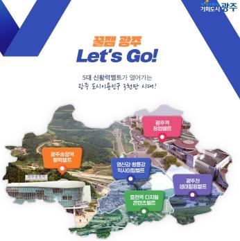 광주시는 ‘영산강?황룡강 익사이팅벨트’, ‘광주천 생태힐링벨트’, ‘광주송정역 활력벨트’, ‘광주역 창업벨트’, ‘효천역 디지털콘텐츠벨트’ 등 5대 신활력벨트의 밑그림을 완성했다.
