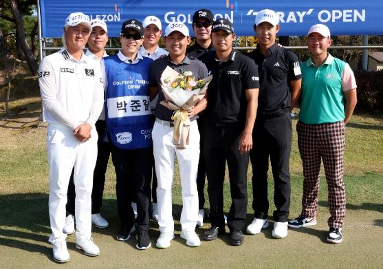 박준원은 선수회 대표 ‘골프존-도레이 오픈’ 디펜딩 챔피언인 박은신(33.하나금융그룹), 최진호(39.COWELL) 등 여러 동료 선수들의 격려 속에 은퇴식을 치렀다.