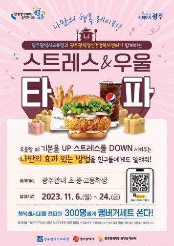 광주시교육청은 오는 6~24일 건강한 정신건강 문화조성을 위해 관내 초·중·고등학생을 대상으로 ‘아동·청소년 정신건강 인식개선 캠페인’을 실시한다고 밝혔다.