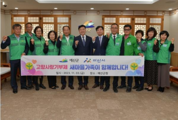 아산시는 지난 3일 예산군청에서 새마을회 간 ‘고향사랑기부금 상호 전달식’이 열렸다고 밝혔다.