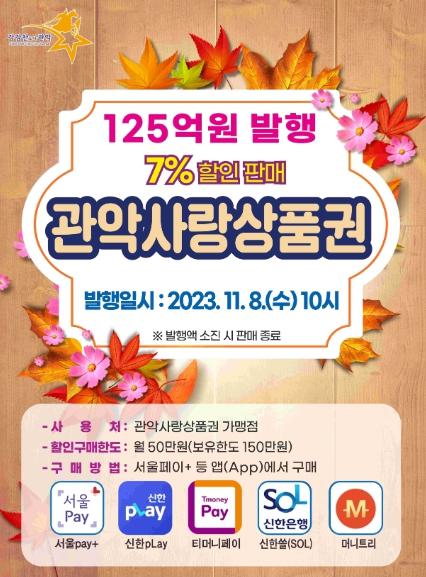 이번 상품권 발행 할인율은 7%로, 할인율에 대한 보전금 전액은 관악구가 부담한다.