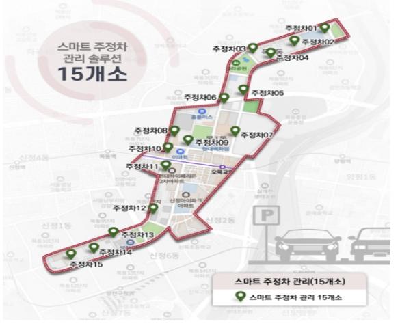 구는 공공주차장 9곳의 주차면 275면에 주차가능 여부를 감지할 수 있는 사물인터넷(IoT) 센서를 설치했다. 또한, 공공주차장 10곳과 민간주차장 6곳에 주차관제시스템을 통합 설치해 센서 등을 통해 실시간으로 수집된 정보를 토대로 주차현황을 앱에 표출토록 했다. 공공주차장에 민간 주차장 활용을 더함으로써 주차관리 효율성 증대와 더불어 학원가 배회 차량 및 불법주정차 저감에도 크게 기여할 것으로 보인다.