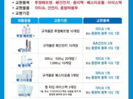 ‘재활용품 무료 교환’은 가정에서 버려지는 재활용품을 가까운 읍면사무소로 가져가면 투명 페트병 10개, 폐 종이 팩 1000㎖ 기준 10개, 폐스티로폼 3개, 아이스팩 3개를 각 티슈나 종량제 봉투로, 폐건전지 10개를 새 건전지 또는 종량제 봉투로 교환해 준다.