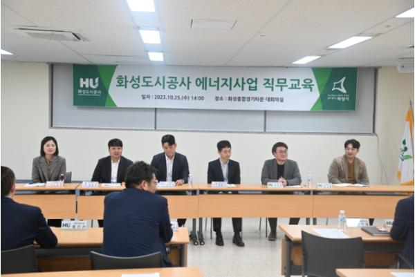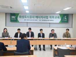화성도시공사는 화성종합경기타운 대회의실에서 화성시, HU공사 임직원을 대상으로 에너지사업 직무교육을 실시했다고 6일 밝혔다.