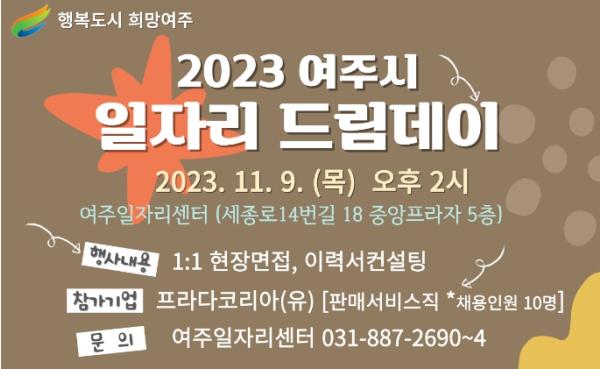 여주시는 11월 9일 여주일자리센터에서 2023년 11월 일자리 드림데이를 실시한다고 밝혔다.