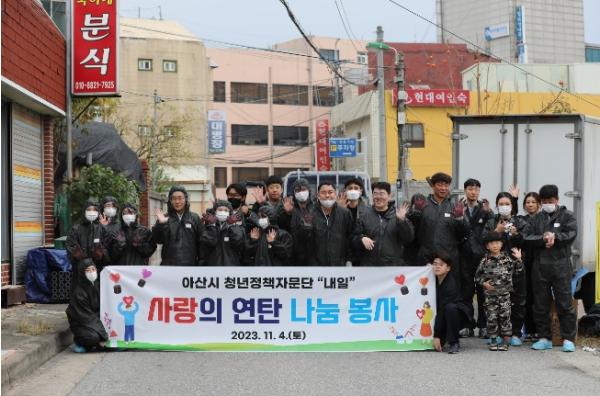 아산시 청년정책자문단이 지난 4일 온양1동 저소득 가구들에 연탄을 나눔 봉사활동을 펼쳤다.