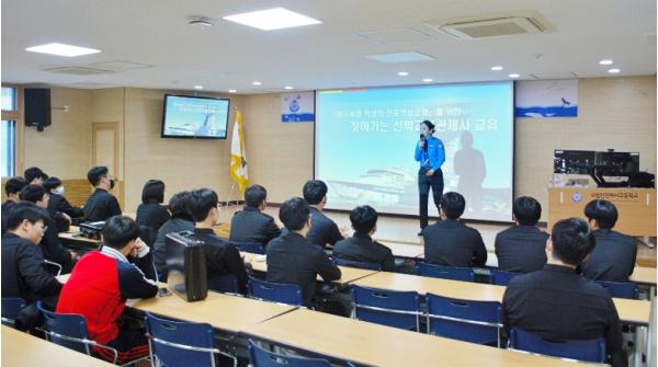 이날 교육에서는 현직 해상교통관제사가 직업 선택 이유, 실무 경험과 노하우를 솔직하게 학생들에게 들려주고, 선박교통관제분야 고교학점제 과정 선택을 고민하는 해사 계열 학생들에게 눈높이에 맞는 진로 탐색 기회를 제공했다.