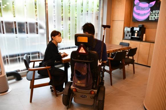 ‘헤어카페 더휴’는 지난해 9월 구가 일반 미용실을 이용하기 어려운 장애인들의 불편을 해소하고자 ‘전국 최초’로 선보인 장애인 친화 미용실이다.