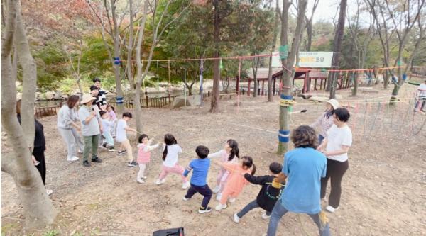 아동들의 놀권리 보장과 농촌의 지속가능한 놀이문화 형성을 위해 기획된 이번 행사는 나무와 나무를 밧줄로 연결해 그네, 짚라인, 줄다리, 해먹 등을 설치해 아이들에게 자연놀이터를 선물했다.