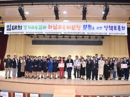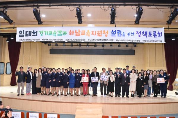 하남교육지원청 설립추진위원회 등 학부모단체가 주관한 이날 토론회에는 이현재 하남시장, 임태희 경기도교육감, 김성미 광주하남교육지원청 교육장이 참석했으며, 궂은 날씨에도 시민과 학부모 등 200여 명이 함께해 교육지원청 신설에 뜨거운 관심을 보였다.