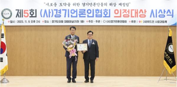 (사)경기언론인협회가 주관하는 의정대상은 경기도민의 권익 증진과 지역사회 및 지방자치 발전에 기여한 국회의원 및 지방의회의원에게 수여하는 상이다.