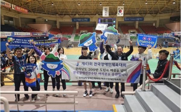 오는 8일까지 이어지는 제43회 전국장애인체전에 선수들만큼이나 넘치는 열정으로 도내 12개 시군 경기장 곳곳에서 열띤 응원과 경기 관람, 전남의 정을 나누고 있는 도민응원단이 화제다.