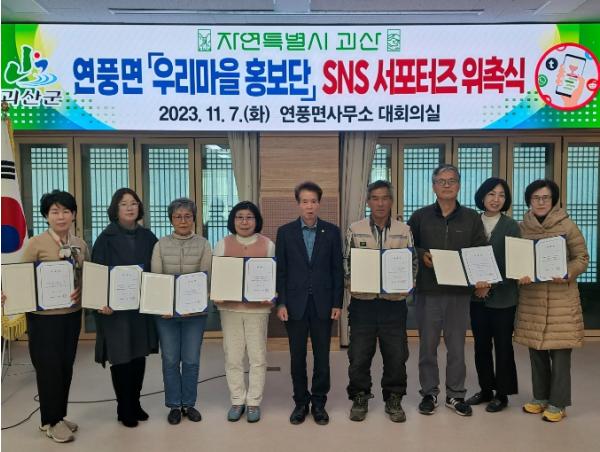 충북 괴산군 연풍면은 지난 7일 면사무소 대회의실에서 ‘우리마을 홍보단’ SNS 서포터즈 12명을 위촉했다.