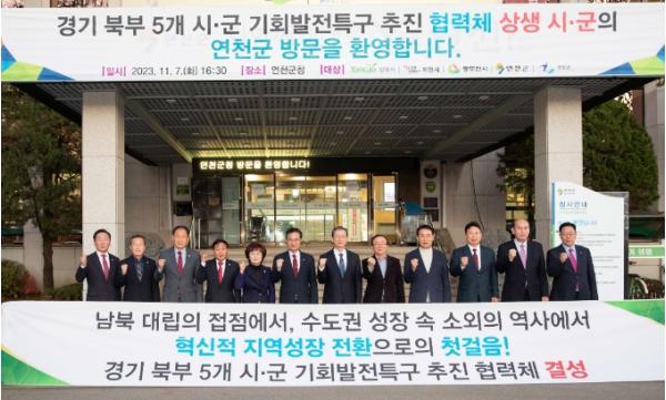 이날 협약식은 정부 지역균형발전 핵심 정책인 기회발전특구 추진과 관련해 입법 취지에 부합하는 경기 북부 5개 시군이 모여 기회발전특구 관련 정책에 대한 이해를 공동으로 증진하고, 경쟁이 아닌 배려와 협력을 바탕으로 기회발전특구 신청 및 추진에 전략적으로 연대하는 기반을 마련하고자 구성됐다.