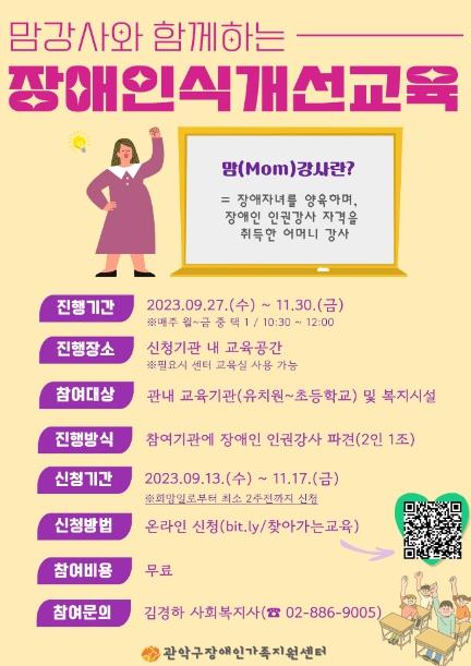 구와 관악구장애인가족지원센터는 맘(Mom)강사들이 장애가 있는 자녀를 양육한 경험에서 우러나오는 현실성 있는 교육을 제공하고, 주민들의 효율적인 장애인식 개선에 기여할 수 있을 것으로 기대하고 있다.