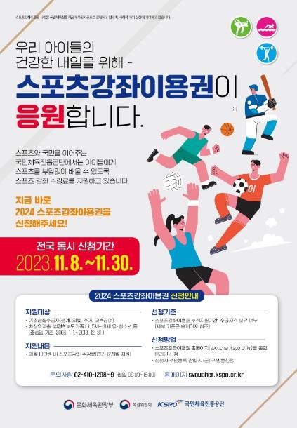 올해 스포츠강좌이용권을 지원받았던 대상자도 이번에 신청해야 2024년도 이용권을 지원받을 수 있다.