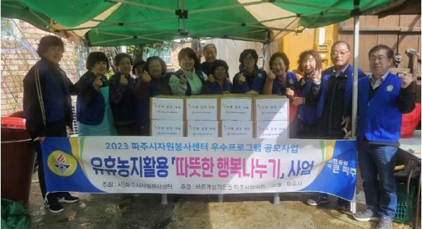 파주시 월롱면 바르게살기운동 월롱면위원회는 6일, 유휴농지를 활용해 직접 수확한 배추로 담근 김장 김치를 어려운 이웃에게 전달하는 ‘사랑의 김장 나눔’ 행사를 가졌다.