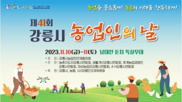 강릉시 농업인단체협의회(회장 김성기)는 오는 10일부터 11일까지 2일간 남대천 둔치(단오제문화관 앞)에서 ‘제41회 강릉시 농업인의 날’ 행사를 개최한다.