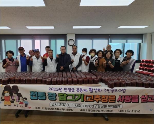 올해로 4번째인 고추장 만들기 사업은 지역에서 생산된 고품질 고춧가루와 단성면 주민자치위원들의 특별한 장 담그기 노하우가 더해져 맛이 훌륭하여 인기가 많다.
