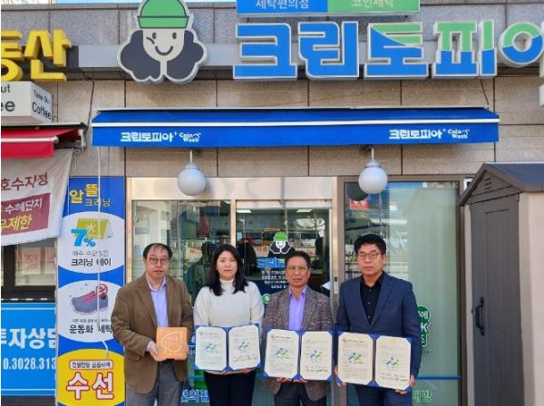 아산시 온양1동 행복키움추진단, 탕정한마음종합사회복지관과 크린토피아 아산모종롯데캐슬어울림점이 지난 8일 관내 저소득 소외계층 세탁 서비스 지원을 위한 후원 협약을 체결했다.