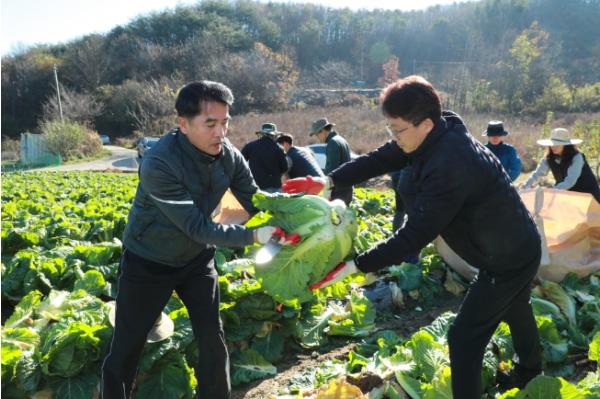 지난 8일 최재형 보온군수를 비롯해 미래농촌전략실, 농정과, 산외면 등 50명의 직원들은 산외면 원평리에서 배추 농사를 짓는 농장을 방문해 배추 수확을 도우며 구슬땀을 흘렸다.