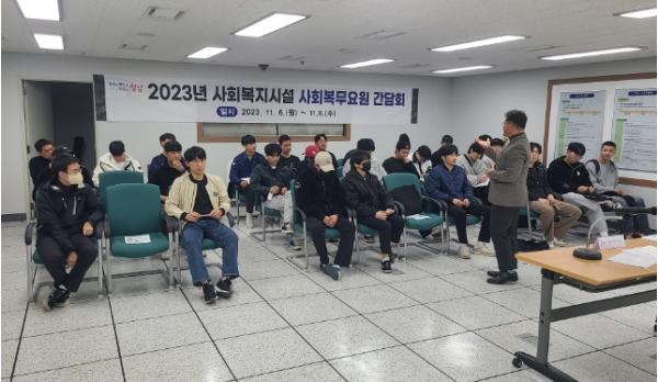 이번 간담회는 성남시 내 사회복지시설에서 복무 중인 사회복무요원들의 고충 및 애로사항을 청취하고 상담을 통해 사기진작 및 긍정적인 근무환경을 형성하고자 마련했다.