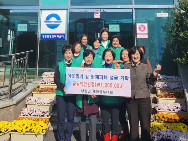 생림면 새마을부녀회는 관내 기초생활수급 독거노인의 화재로 소식을 접하자마자 회원 한 사람 한 사람 따뜻한 마음을 담아 성금을 모금하여 생림면 행정복지센터에 이웃돕기성금으로 100만원을 전달했다.