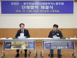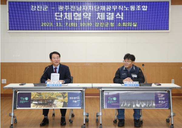 강진군과 광주전남자치단체공무직노동조합이 지난 7일 군청 소회의실에서 단체협약 체결식을 가졌다.