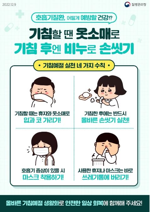 아울러, “백일해를 포함한 호흡기 감염병 등 예방을 위해 일상 생활에서 손 씻기, 기침예절을 실천할 수 있도록 부모님들의 적극적인 관심과 지도가 필요하다”고 밝혔다.