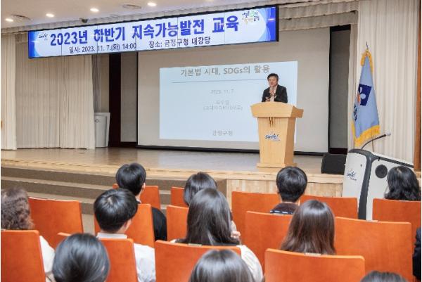 부산 금정구는 지난 7일 구청 대강당에서 전 직원을 대상으로 2023년 하반기 지속가능발전 교육을 했다.