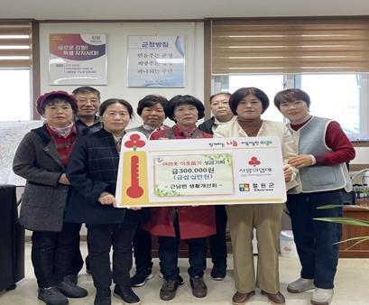 철원군 근남면 생활개선회에서는 11월 8일 근남면사무소를 방문해 “날씨가 추워지고 있어 힘든 시기를 보내고 있을 어려운 이웃을 위해 사용해 달라”며 성금 30만원을 근남면(면장 장미숙)에 전달했다.