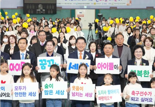 전라남도는 11일 고흥 팔영체육관에서 2023년 전남도 보육 교직원 한마음 대축제를 성황리에 개최하고, 3천여 명의 어린이집 보육 교직원이 모여 ‘아이가 행복한 전남 보육’을 위해 앞장설 것을 다짐했다고 밝혔다.