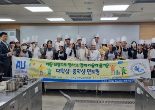 선일중학교, 성안중학교, 석호중학교 멘티 21명은 안산대학교 호텔 조리학과 학생 멘토와 함께 직업에 대해 배우고 직접 요리를 했다.