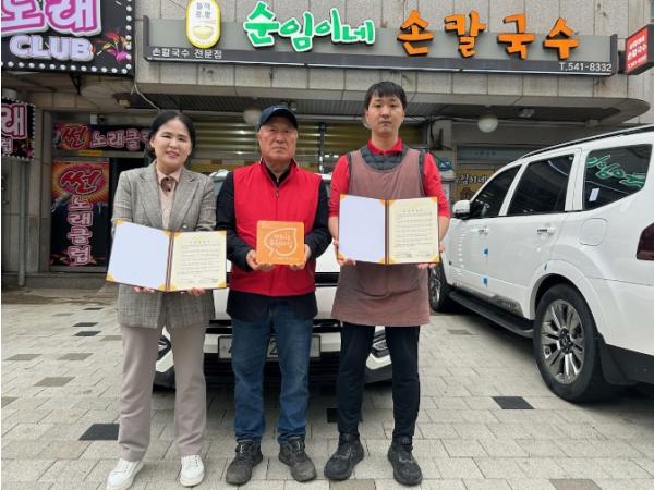 아산시 배방읍 행복키움추진단이 지난 10일, 순임이네 손칼국수(대표 김종현, 공수리 위치)와 후원 협약 및 위기가구 발굴을 위한 업무협약을 체결했다.