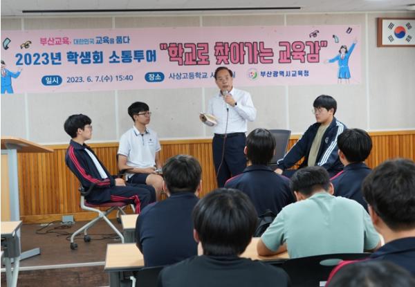이 행사는 교육감과 각급 학교 학생회 학생들의 소통을 위한 것으로, 지난 6월 사상고에 이어 두 번째 열린다.