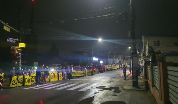 파주 성매매집결지 폐쇄를 위한 시민지원단이 지난 9일, 시민단체, 지역주민, 공무원 등 120여 명이 참여한 가운데 파주읍 연풍리 도심과 집결지 인근에서 성매수자 차단을 위한 야간 캠페인 ‘올빼미 활동’을 진행했다.