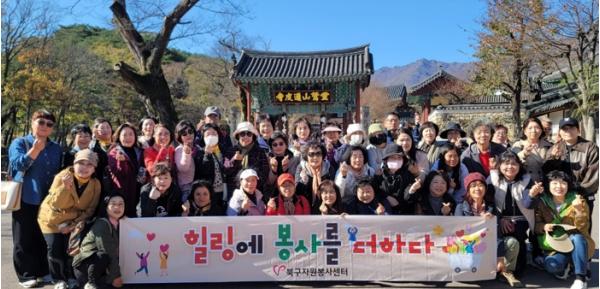 (사)부산광역시 북구자원봉사센터는 7일 양산 통도사에서 나눔과 봉사로 지역사회를 위해 애쓴 자원봉사캠프 및 자원봉사단체와 함께하는‘2023년 힐링에 봉사를 더하다’ 행사를 개최했다고 밝혔다.